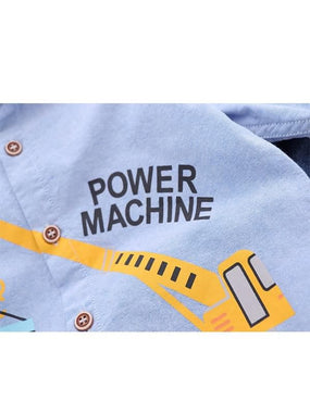 Cartoon Vehicle Crane Printed Cotton Shirt Long-sleeve for Toddlers Boys