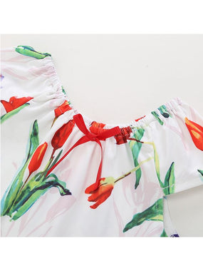 Hot Sale Clorful Tulips Printed Romper Bodysuit For Baby Girls
