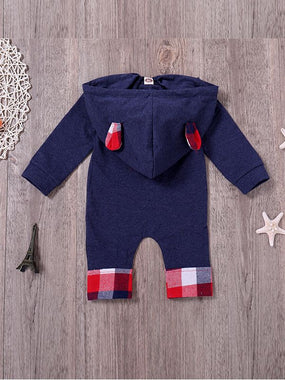 Royalblue Red Plaid Hoodie Baby Onesies Romper Cotton Jumpsuit