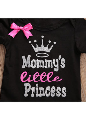 Short Sleeves Baby Romper Cartoon Crown Letters Printed Bowknot Bodysuit For Babies
