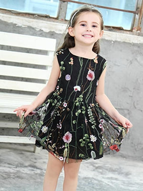 Flower Pattern Embroidered Tulle Princess Dress Sleeveless for Toddlers Girls