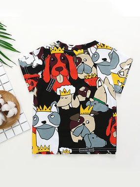 Hot Sale Cartoon Dog Printed Round Collar Top T Shirt For Baby Toddler Boys Girls